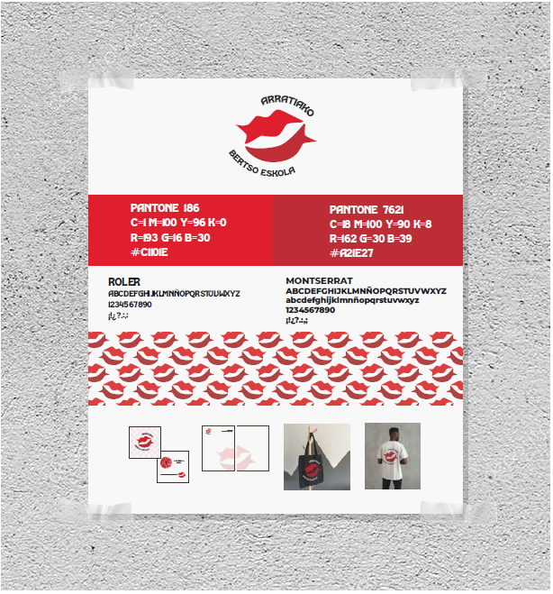 Arratiako Bertso Eskola buscaba una renovación de identidad visual, queriendo reflejar lo tradicional de la disciplina bertsolaritza con un toque más actual, siempre sin perder esa esencia. Para ello, elaboré un logotipo donde se recogiera esa tradicionalidad en la tipografía y el modernismo en el elemento gráfico. En cuanto a este último, escogí la herramienta con la que se ejerce y lo convertí en bocadillos para simular la espontaneidad y conversación característica de ella. Para darle totalidad, usé dos matices del color rojo que ésta presente en muchos aspectos de la cultura de Euskal Herria como por ejemplo Txantxangorri (pájaro icónico de la cultura local y del euskera).